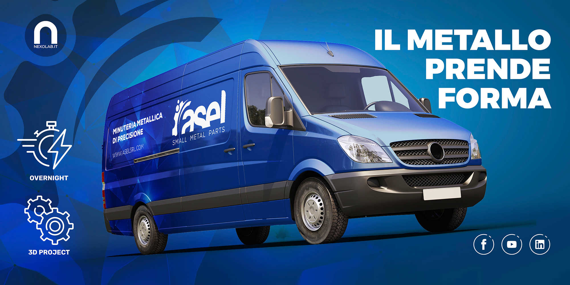 Il design simboleggia la sinergia tra l’ingranaggio stilizzato e il pezzo in fase di distacco, il tutto creato da linee fluide che rappresentano velocità ed efficienza. La dimensione importante del lettering sottolinea la solidità e l’esperienza di questa pluriennale realtà.